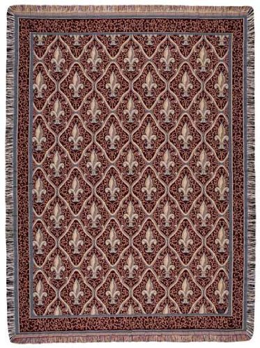 Red Traditional Fleur De Lis Pattern Tapestry Throw Blanket 50" x 70" Features